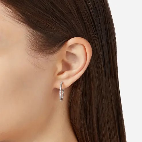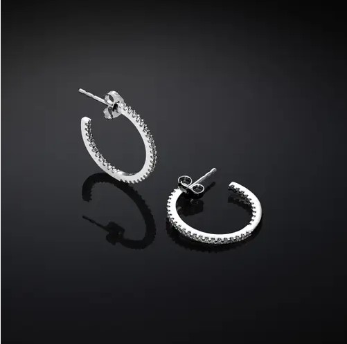 Orecchini cerchio in argento 925/°°° diametro 2 cm con zirconi. Chiusura perno e farfallina. Collezione Silver.