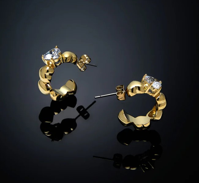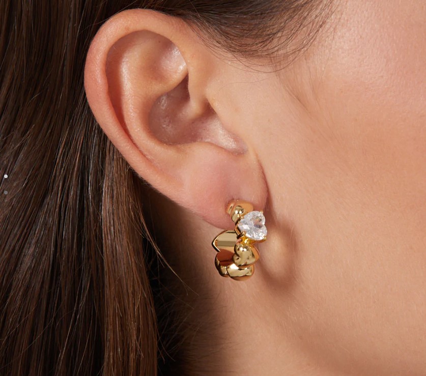Orecchini cerchio rigido in metallo placcato oro della collezione cuoricino. Diametro 20 millimetri con zircone taglio cuore 7×7 millimetri. Referenza J19AVT14