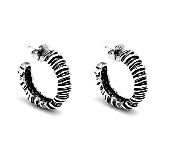 Orecchini cerchio in argento 925/°°° della collezione Fili composti da fili d’argento in sequenza. Chiusura perno e farfallina. Peso 8,5 singolo orecchino. Diametro 2,8 cm. Realizzato a mano in Italia. Referenza 11131