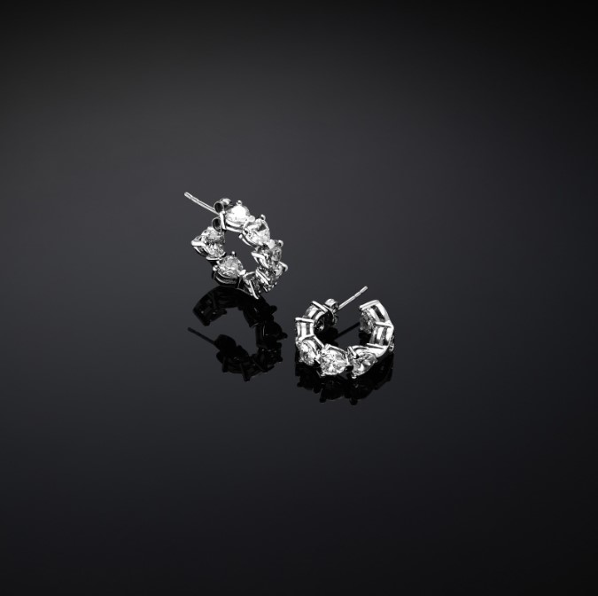 Orecchini in metallo placcato rodio, diametro 17.5, con zirconi bianchi a forma di cuore. Referenza J19AWJ07