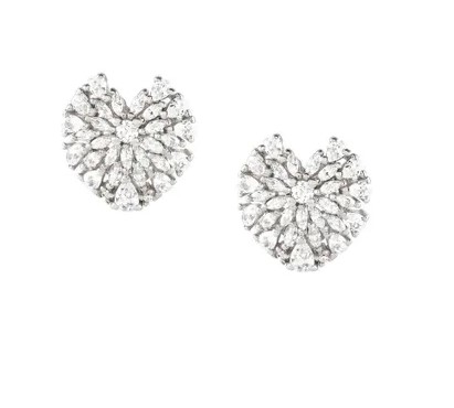 Orecchini bottone in argento 925/°°° placcato oro bianco con cuore pavè di zirconi. Chiusura perno e farfallina. Misura cuore 1,2×1,2 cm. Referenza 240204/004