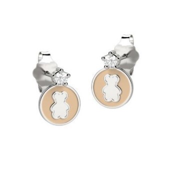 Orecchino bottone rotondo con orsetto in argento 925/°°° con smalto crema e diamantino sintetico. Chiusura con farfallina. Referenza NAN0083