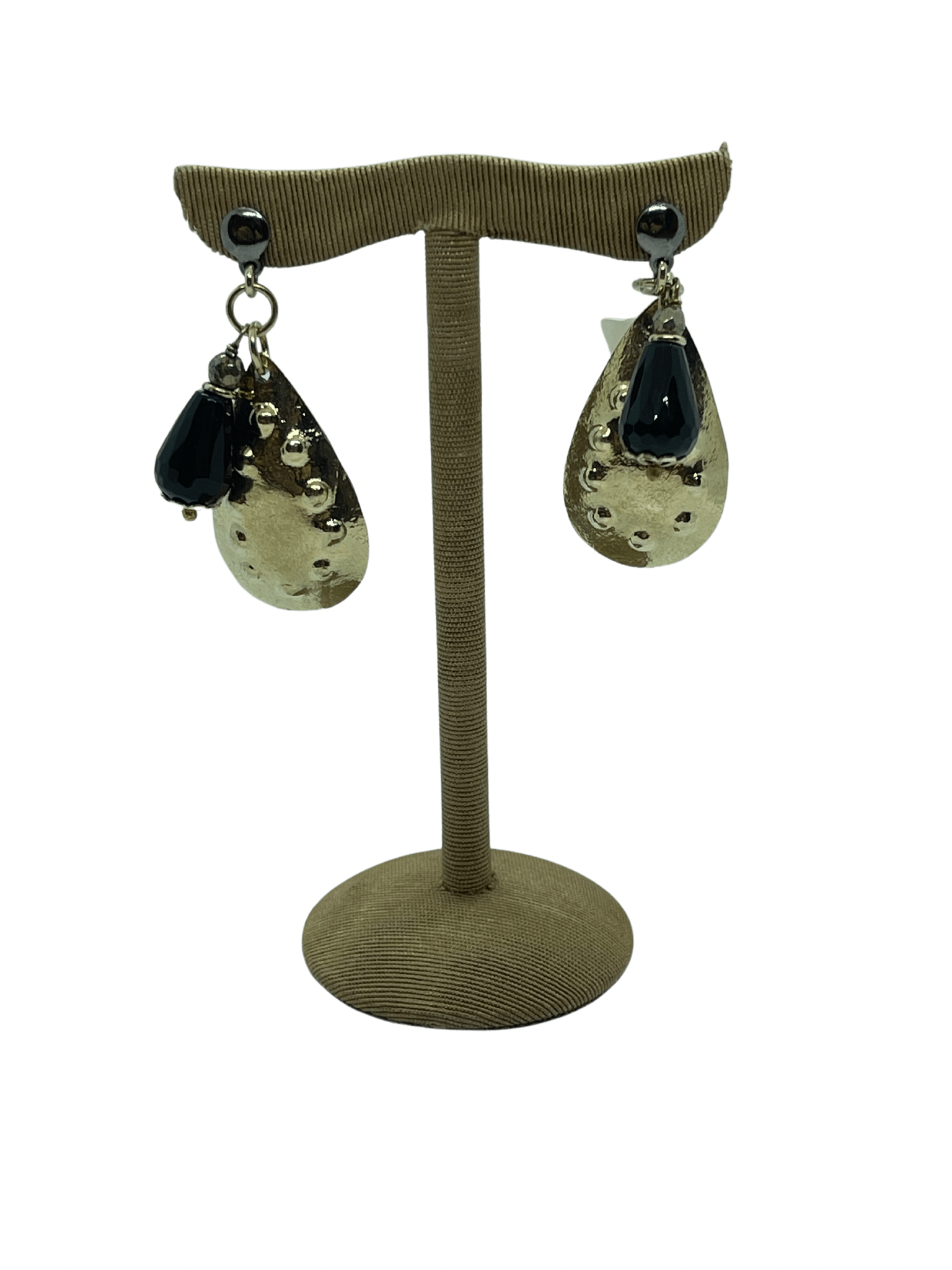 Orecchini pendenti in argento 925/°°° color miele con goccia in pietra nera sfaccettata.