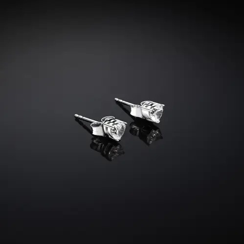 Orecchini lobo punto luce in argento 925/°°° . Dimensione 0,4 cm. Zircone taglio cuore. Chiusura perno e farfallina. Collezione Silver.