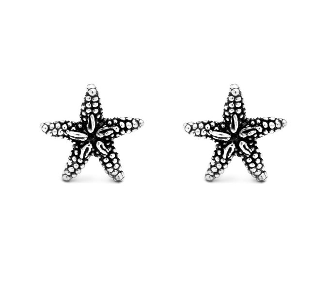 Orecchini in argento 925/°°° brunito della collezione Stelle Marine. Effetto perlage Chiusura perno e farfallina. Peso 3,5 grammi. Altezza 3 cm. Realizzato a mano in Italia. Referenza 07353