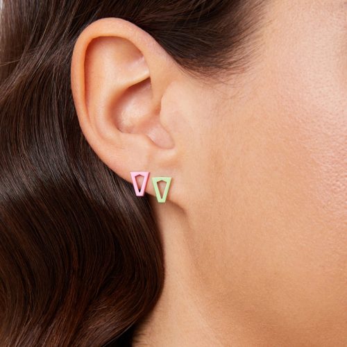 Coppia di orecchini in argento 925/°°° placcatura platino, bagno di colore rosa pastello e verde pastello. Chiusura perno e farfallina