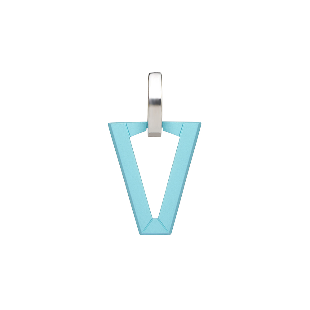 Monorecchino in argento 925/°°° placcatura platino con bagnatura celeste. Diametro cerchio 1 cm. Peso Totale 3,4 cm. Lunghezza 2,4 cm.