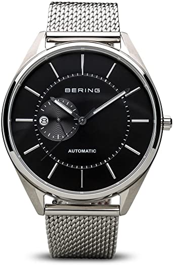 Orologio Uomo automatico, bracciale acciaio maglia milanese, cassa acciaio, quadrante nero con piccoli secondi ed indici argento, vetro zaffiro, impermeabile 3 atm. Cassa 43 mm.