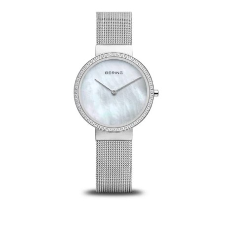 Orologio al quarzo in acciaio cassa 31 mm. Impermeabilità 5 Atm. Vetro zaffiro. Bracciale in acciaio maglia milanese. Quadrante madreperla. Ghiera esterna con swarovski. Chiusura a scatto. Garanzia 3 anni