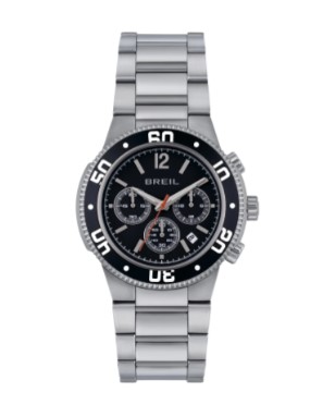 Orologio cronografo al quarzo, cassa 44 mm, vetro minerale, impermeabilità 5 atm. Bracciale in acciaio. Ghiera nera. Quadrante nero con lancetta arancione. Fibbia Deployante.