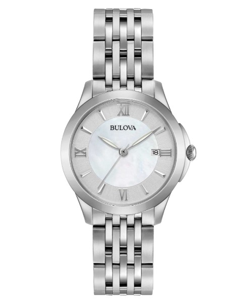 Orologio al quarzo 3H. Cassa acciaio 27mm. Bracciale acciaio. Quadrante Silver misto madreperla. Water resistant 3 Atm. Vetro minerale.