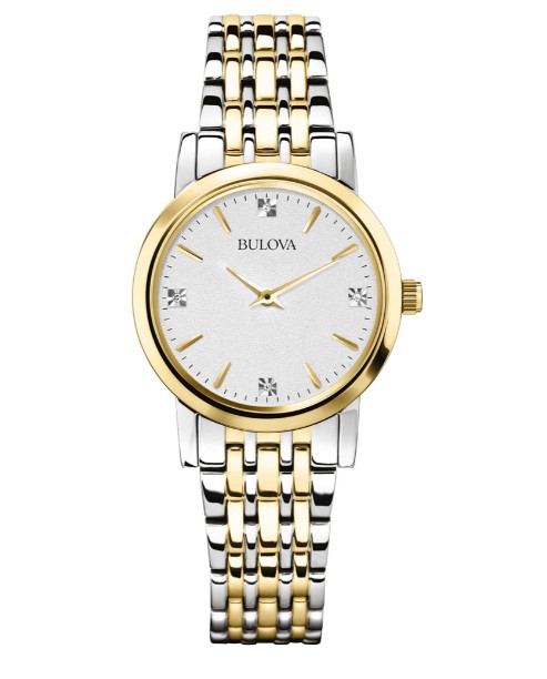 Orologio al quarzo 3H. Cassa acciaio 27mm rifinitura pvd gold. Bracciale acciaio. Quadrante Silver con 4 diamanti. Water resistant 3 Atm. Vetro minerale.