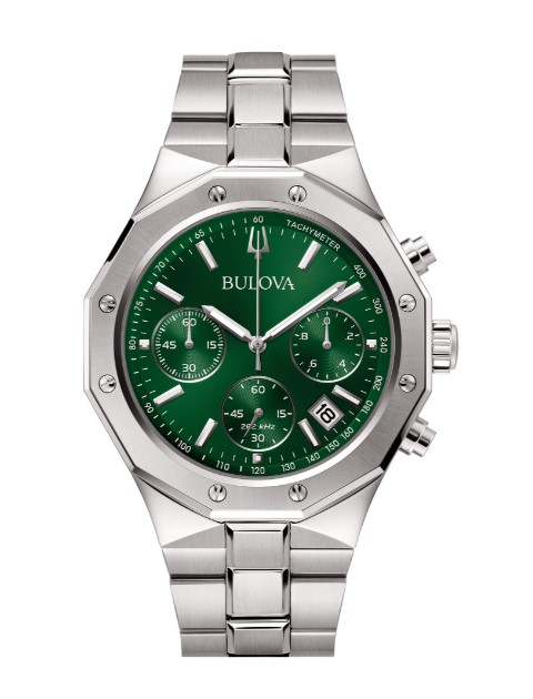 Orologio Quarzo precisionist. Cassa acciaio 44 mm . Bracciale acciaio. Fibbia deployante con pulsanti. Water Resistant 100 metri. Quadrante verde con datario