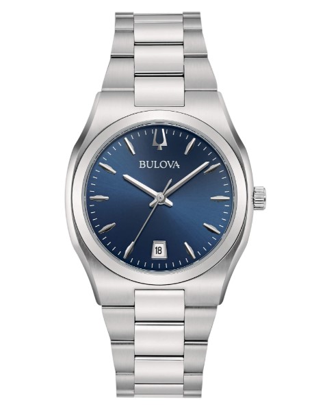 Orologio al quarzo 3H. Cassa acciaio 34 mm. Bracciale acciaio. Quadrante blu. Water resistant 3 Atm. Vetro minerale. Con datario.