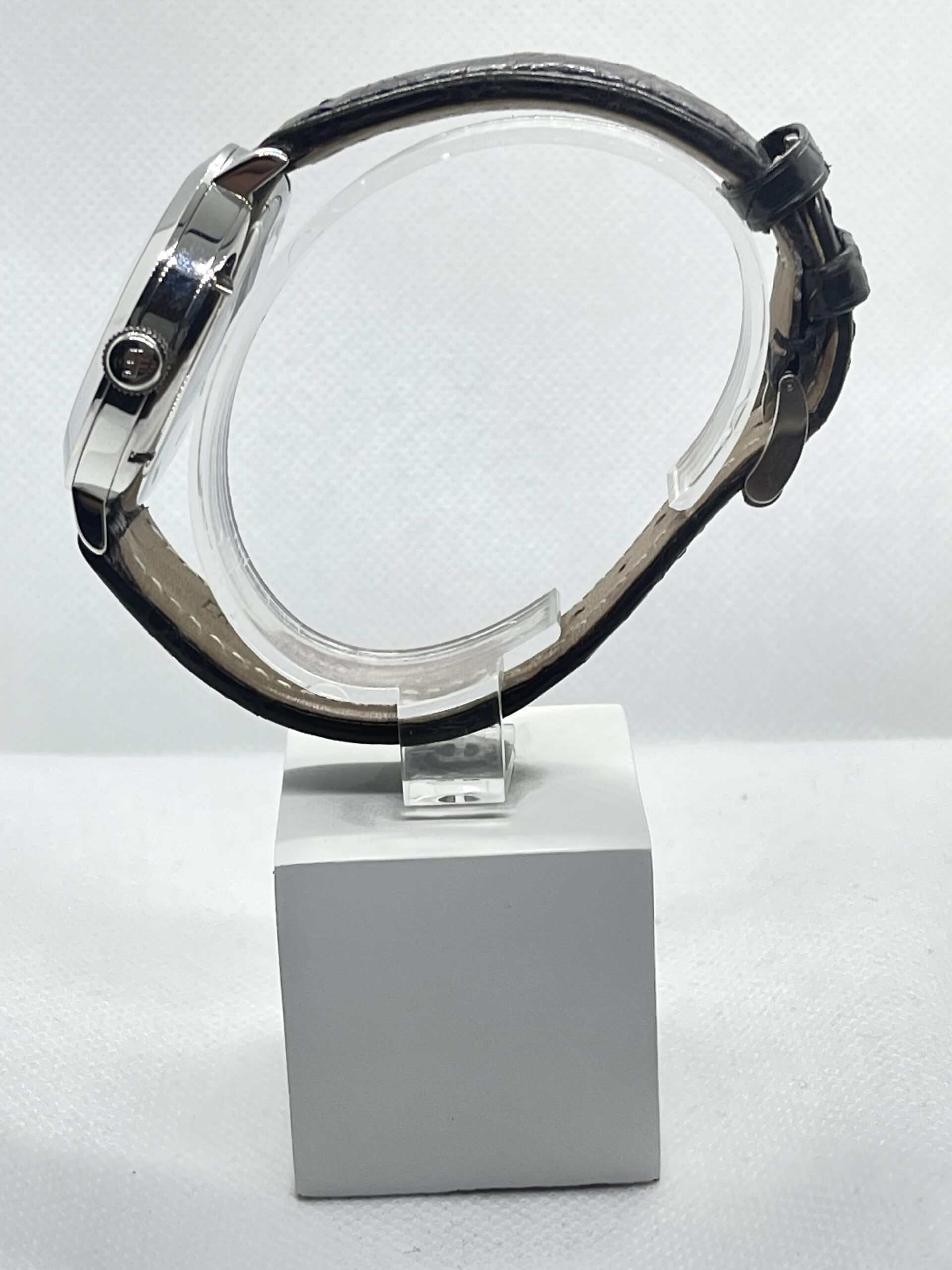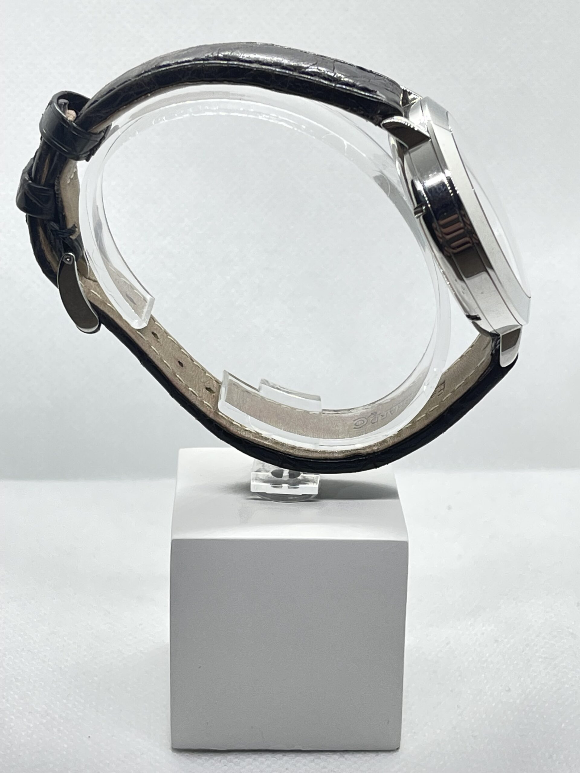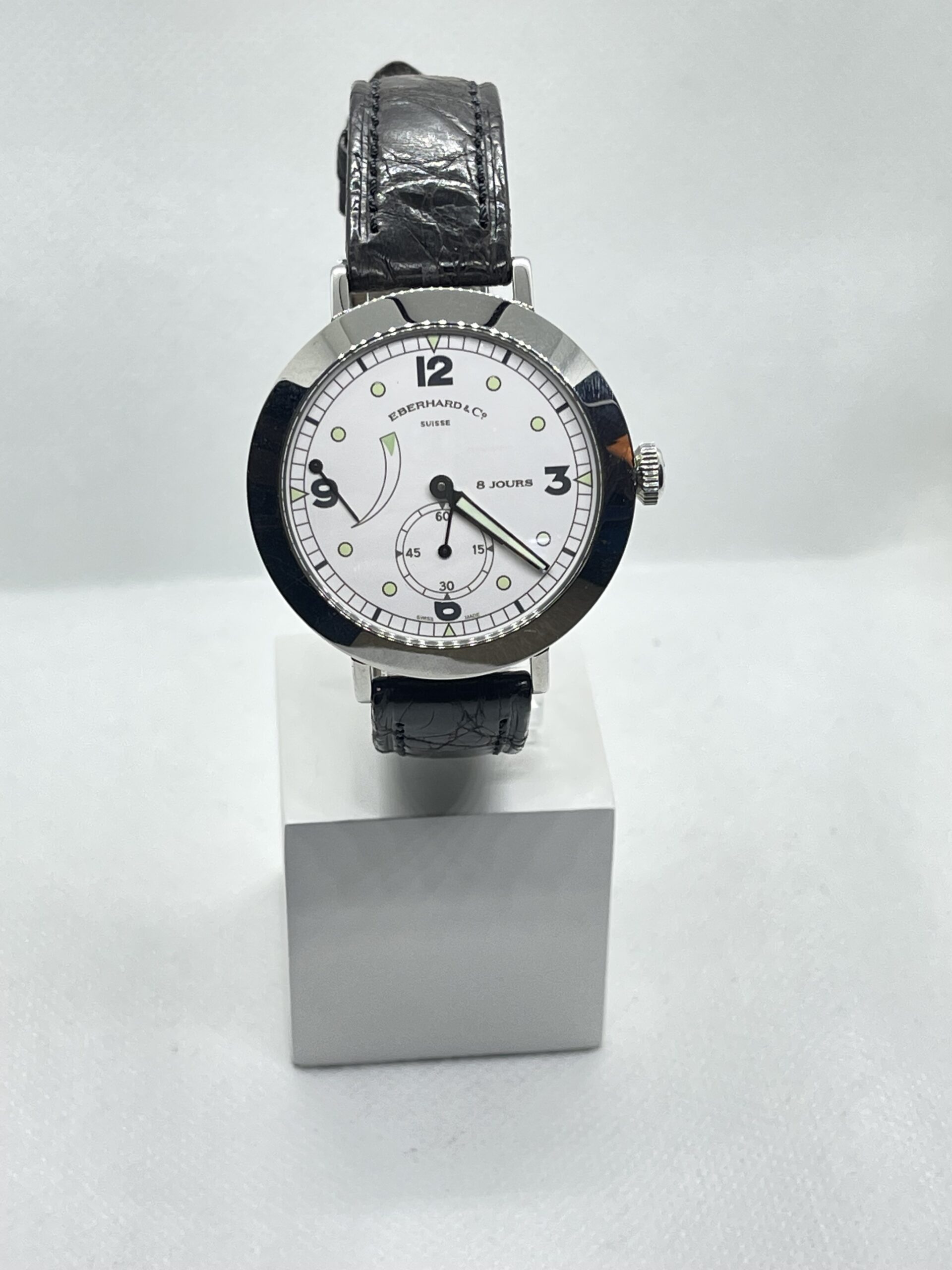 Orologio Eberhard in acciaio meccanico a carica manuale con riserva di carica 8 giorni. Cassa 42 mm. Quadrante bianco con piccoli secondi alle ore 6. Impermeabilità 3 atm. Cinturino in coccodrillo nero fibbia ardiglione. Cinturino usurato da normale utilizzo. Senza documenti e scatola originale. L’orologio viene consegnato revisionato con garanzia di 1 anno Massari Gioielli.