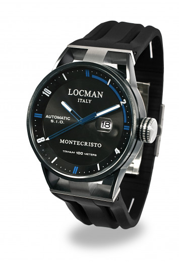 Orologio uomo 3H meccanico automatico 40 ore riserva di carica, cassa 44mm pvd nero, cinturino in silicone nero con fibbia deployante, quadrante nero finiture blu con datario, impermeabilità 10 ATM.
