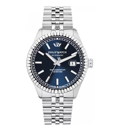 Orologio 3H da uomo cassa 41 mm automatico. Lunetta zigrinata e bracciale jubilee. Impermeabilità 100 metri con corona a vite. Quadrante blu con datario. Swiss Made