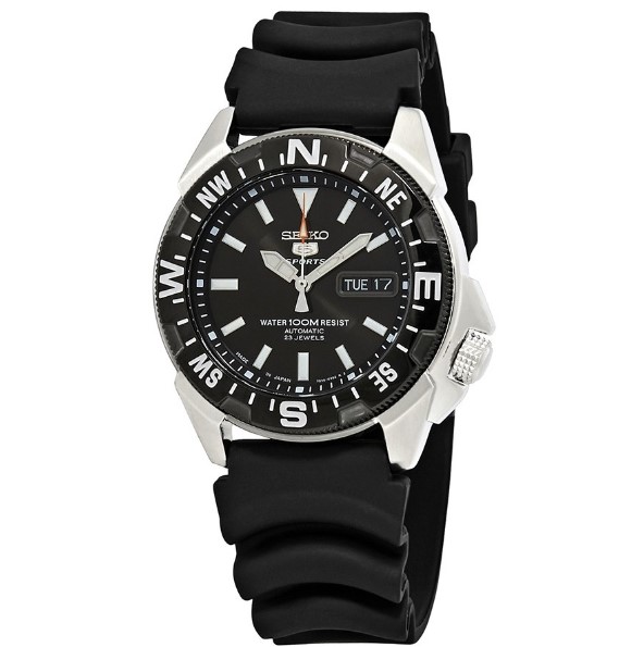 Orologio automatico cassa acciaio 41 mm. 3 H. Impermeabile 100 metri. Quadrante nero con day date. Cinturino gomma nera. Lunetta nera girevole bidirezionale.