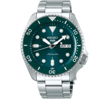 Orologio automatico. 3 H. Subacqueo 10 atm. Cassa 42,5 mm, Quadrante verde con dettagli bianchi ghiera verde. Bracciale acciaio. Vetro minerale.